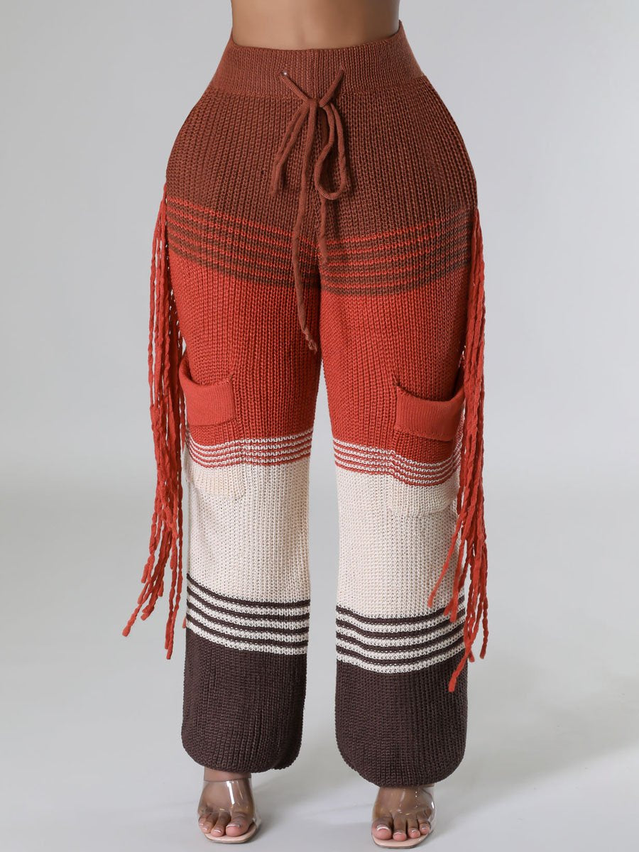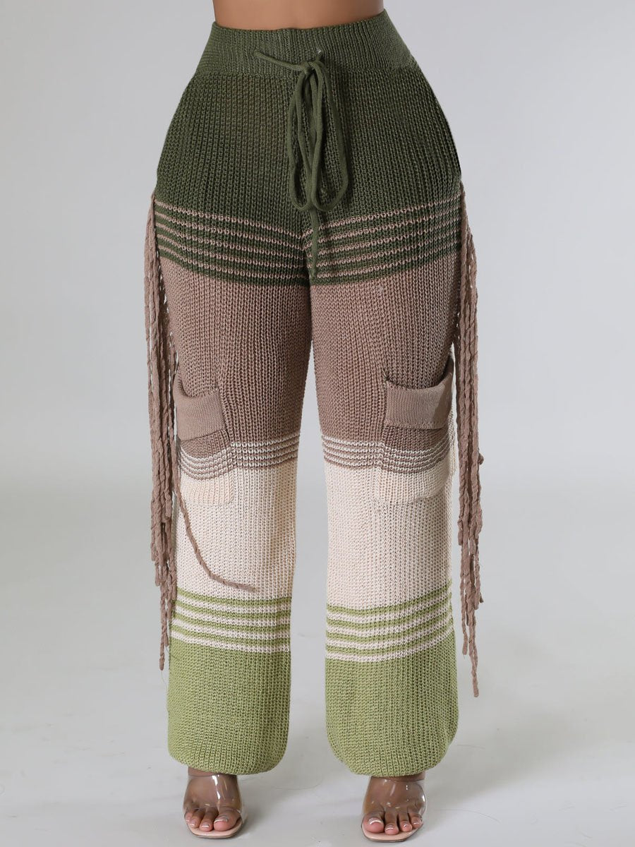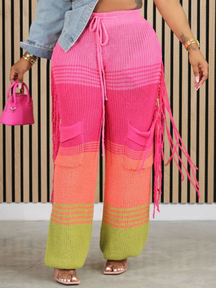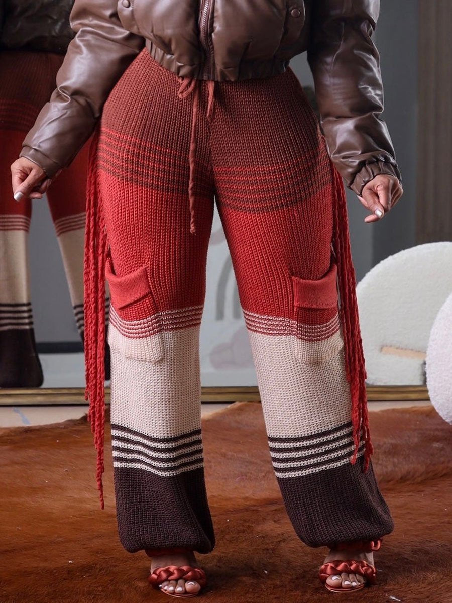 Casual Knitted Colorblock Tassel Loose Pants