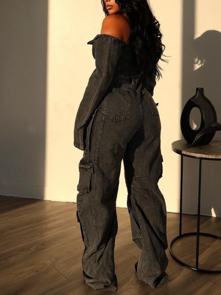 Denim Off Shoulder Jumpsuit
