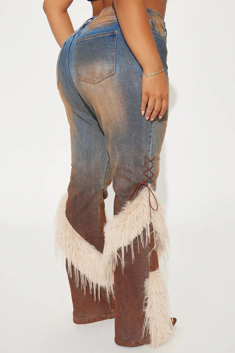 Fashion Casual Lace Up Faux Fur Bootcut Jeans