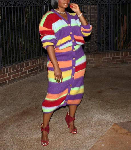 This two-piece, colorful thick knit sweater set well definitely have all eyes on you